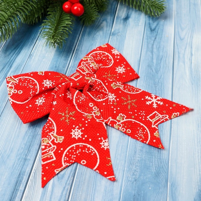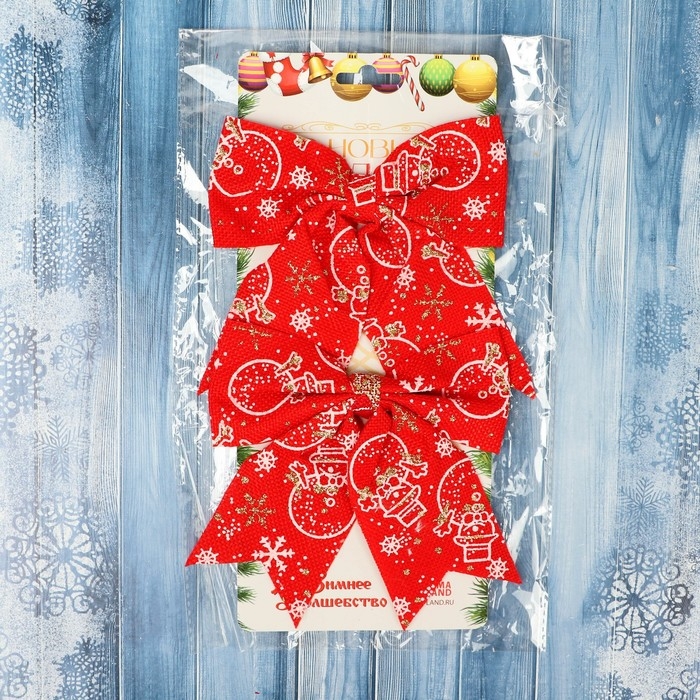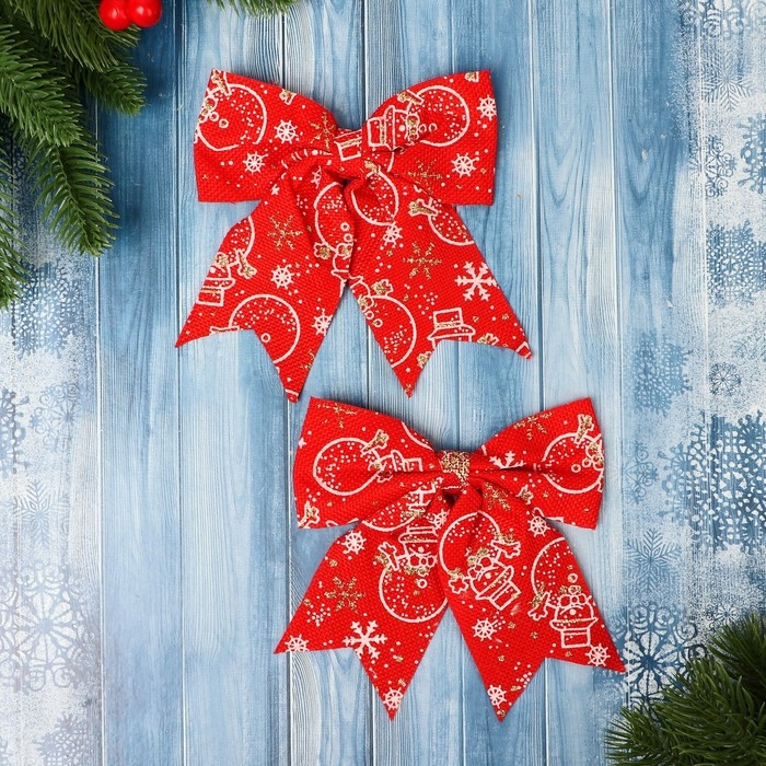Украшение ёлочное "Бант классика Снеговик" (набор 2 шт) 15х13 см, красный