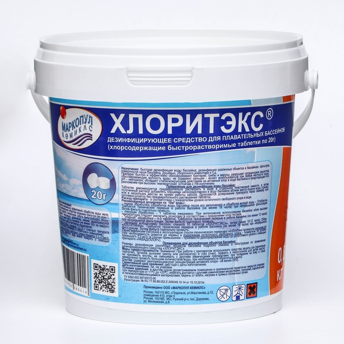 Средство для хлорной дезинфекции бассейна ХЛОРИТЭКС (таблетки по 20 г.) 0,8 кг