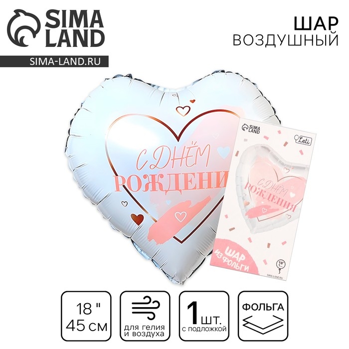 Воздушный шар фольгированный 18" «С днём рождения», сердце