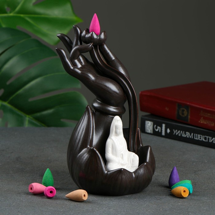 Подставка для благовоний "Лотос в руке" 10х10х23см