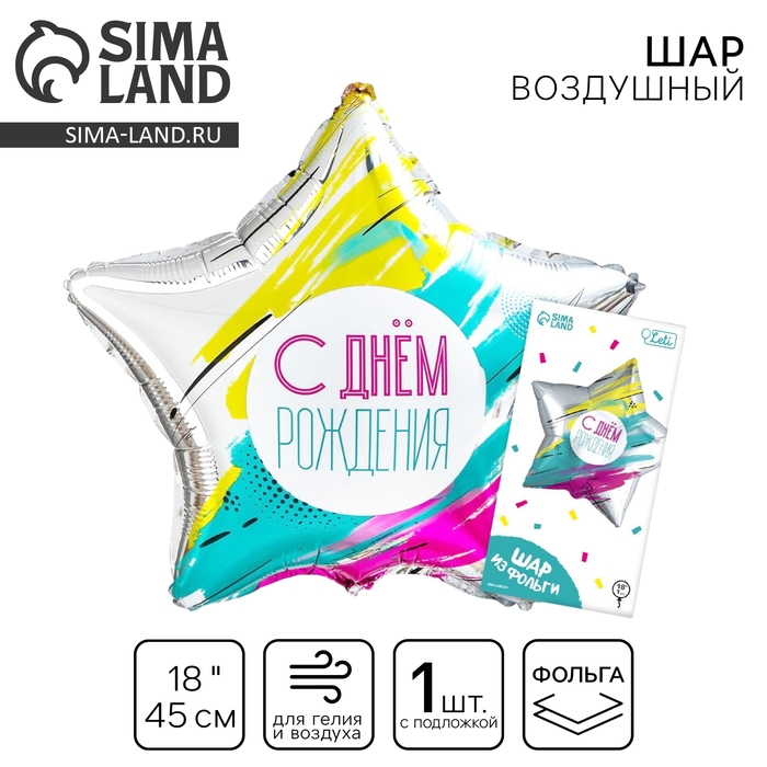 Воздушный шар фольгированный 18" «С Днём рождения», звезда