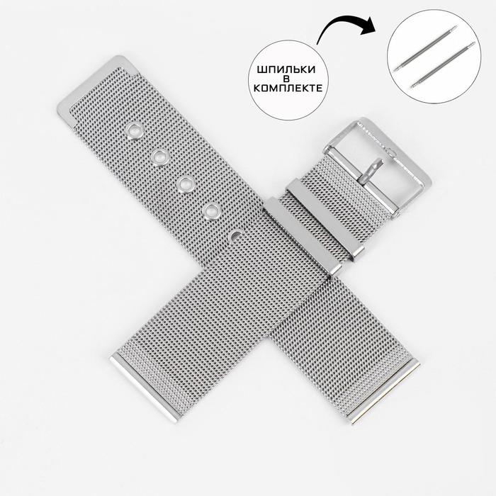 Ремешок для часов "Соломон", 22 мм, металл, l-18 см, серебристый