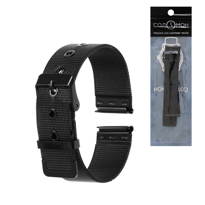 Ремешок для часов "Соломон", 20 мм, нержавеющая сталь, l-19.5 см, черный