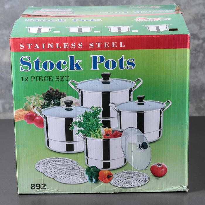Набор кастрюль из нержавеющей стали, 4 предмета: 6 л, 8,5 л, 11 л, 13,5 л, d=26/28/30 см, толщина металла 0,5 мм