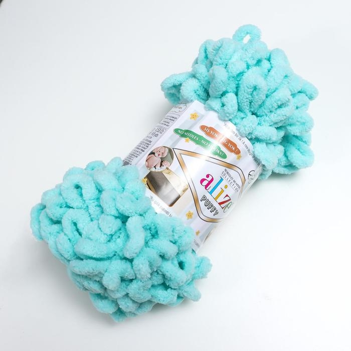 Пряжа "Puffy" 100 % микрополиэстер 9м/100г (19 светло-бирюзовый)