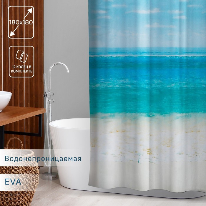 Штора для ванны Доляна «Прибой», 180×180 см, EVA