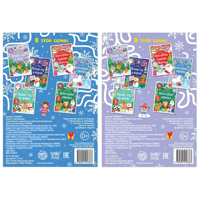Книги с наклейками «Новогодние задания для девочки», набор 2 шт. по 12 стр.