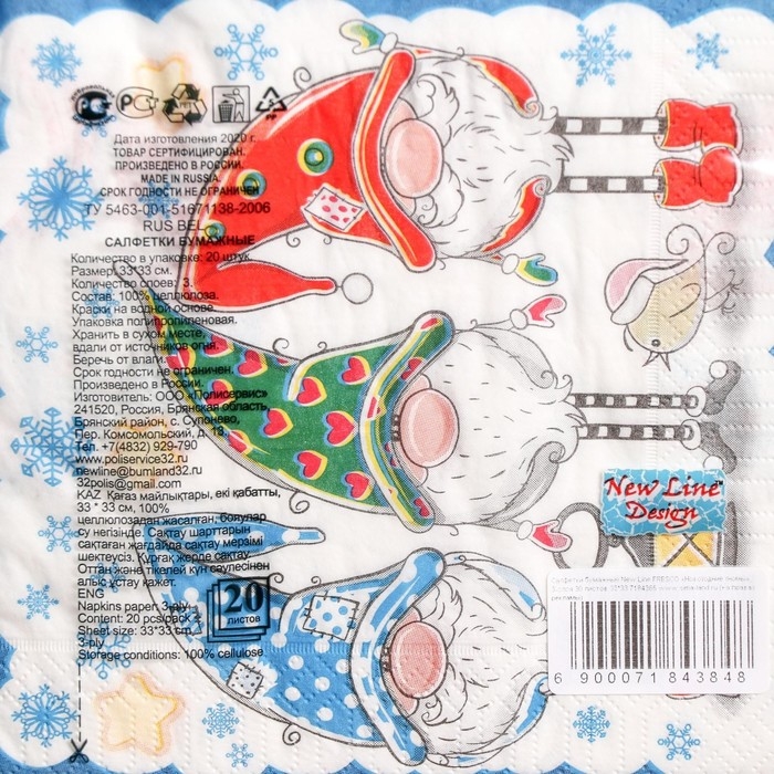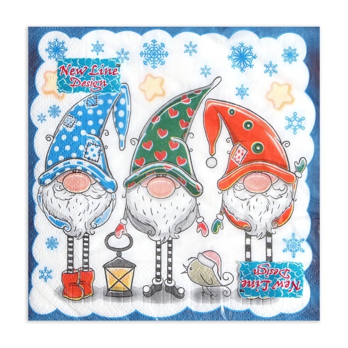 Новый год. Салфетки бумажные New Line Design «Новогодние гномы», 33х33 см, 3 слоя