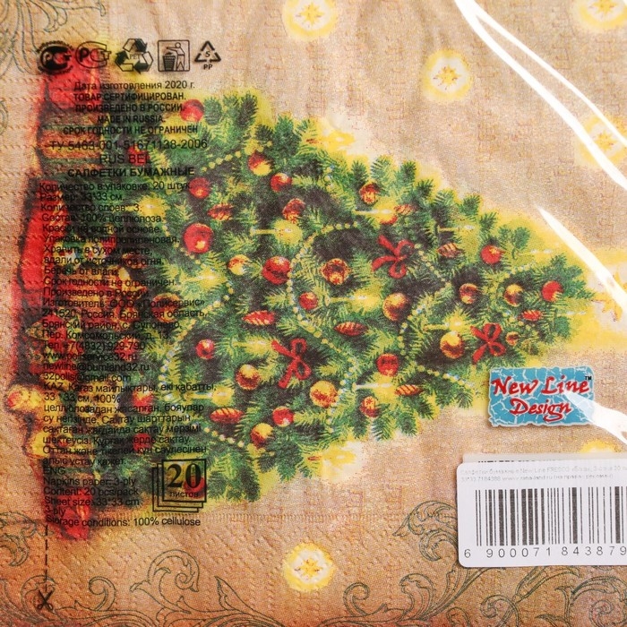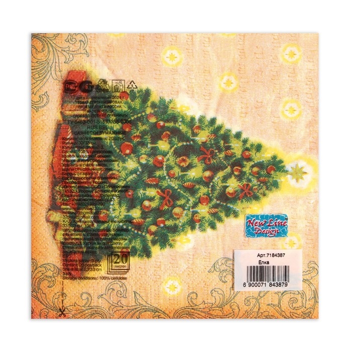 Новый год. Салфетки бумажные New Line Design «Ёлка», 33х33 см, 3 слоя