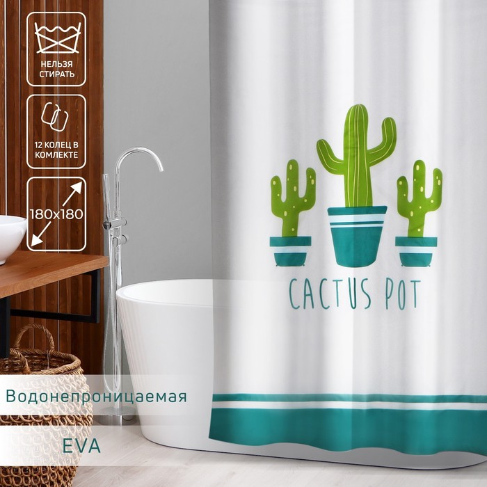 Штора для ванной Доляна «Кактусы», 180×180 см, EVA