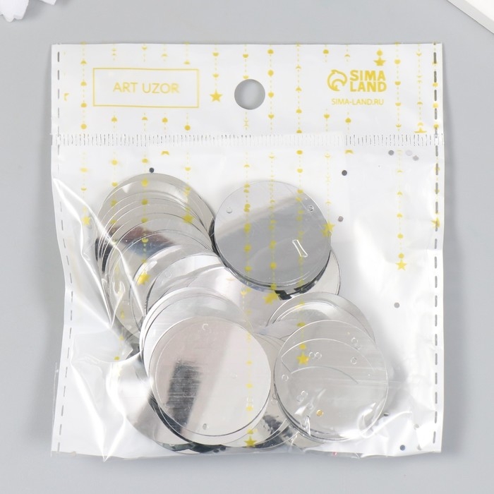 Пайетки "Круг" серебро набор 30 гр d=3 см