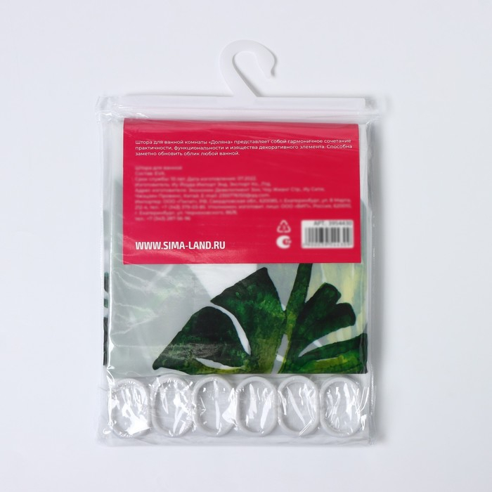 Штора для ванны Доляна «Тропики», 180×180 см, EVA