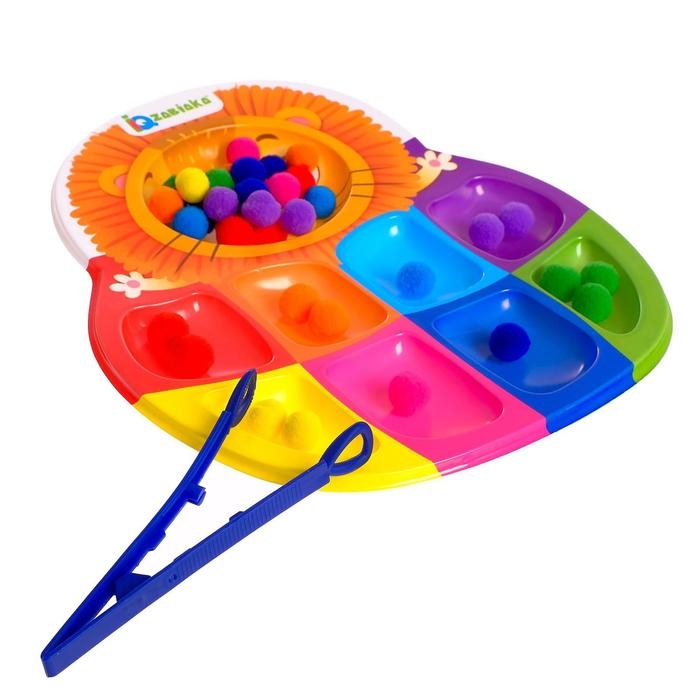 Игра создана для тренировки мелкой моторики, обучению цветам и счёту. Малыш сначала пальчиками, а потом с помощью пинцета будет раскладывать бомбошки по отделениям. Процесс можно усложнять, добавлять новые задания.