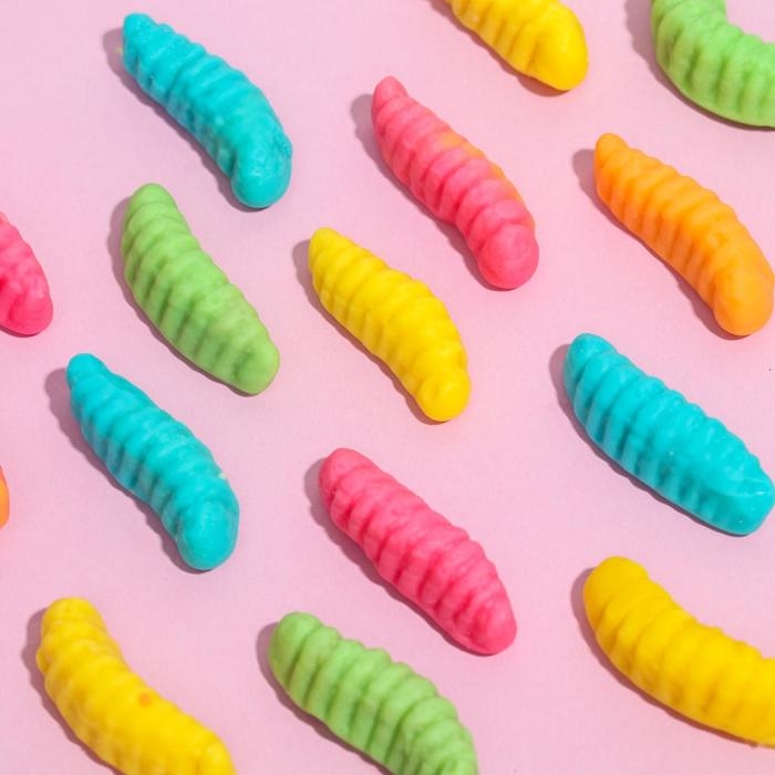 Состав: глюкозный сироп, сахар, агент желирующий – желатин, регулятор кислотности – лимонная кислота (Е330), ароматизаторы: «Лимон», «Ежевика», «Вишня», «Малина», «Персик», «Груша», «Ананас», «Апельсин», «Тутти-фрутти»; красители пищевые: тартразин (Е102), желтый «Солнечный закат» (Е110), понсо 4R (Е124), кармуазин (Е122), синий блестящий FCF (Е133), диоксид титана (Е171); глазирователь – растительное масло, карнаубский воск.