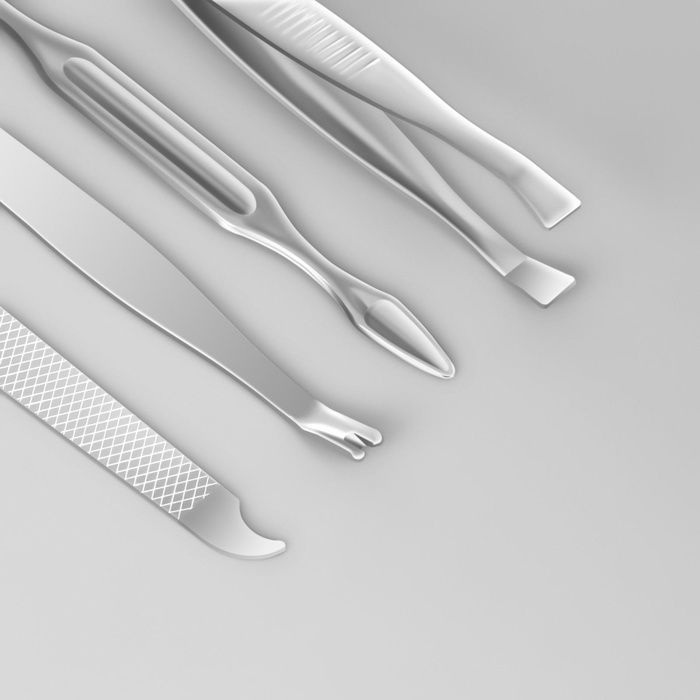 Книпсер, Лопатка, Ножницы, Пилка, Пинцет, Триммер