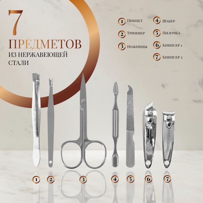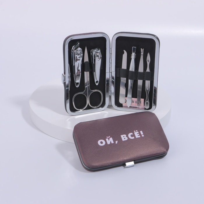 Набор маникюрный «Ой, всё», 7 предметов, в чехле, цвет коричневый