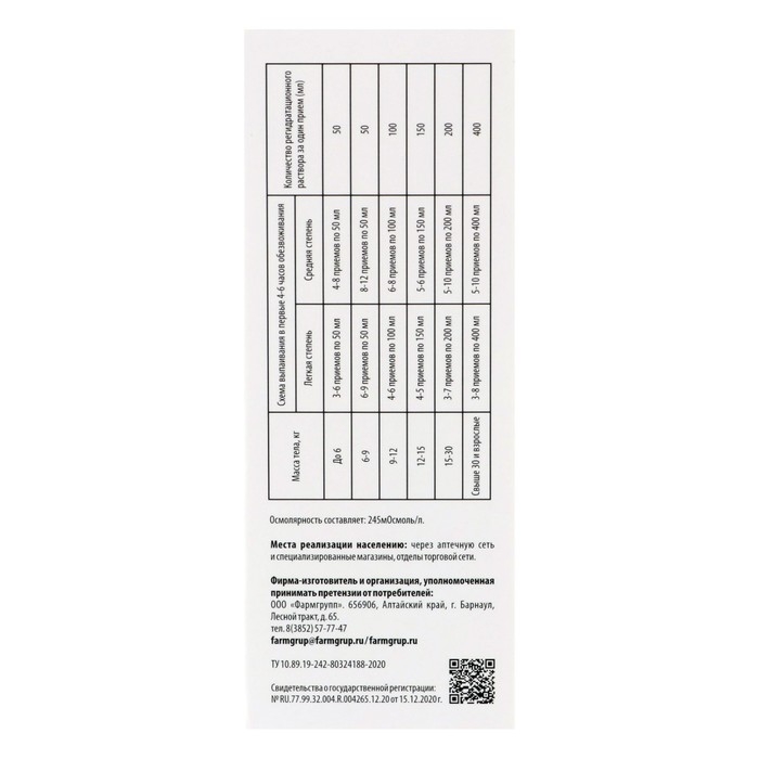 Количество продукта зависит от возраста больного и степени обезвоживания и подбирается индивидуально под наблюдением врача.