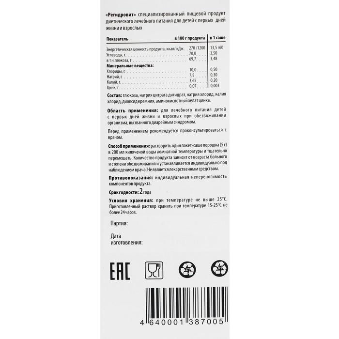 Порошок «РегидроВит», при отравлении и диареи, 10 пакетиков по 5 г