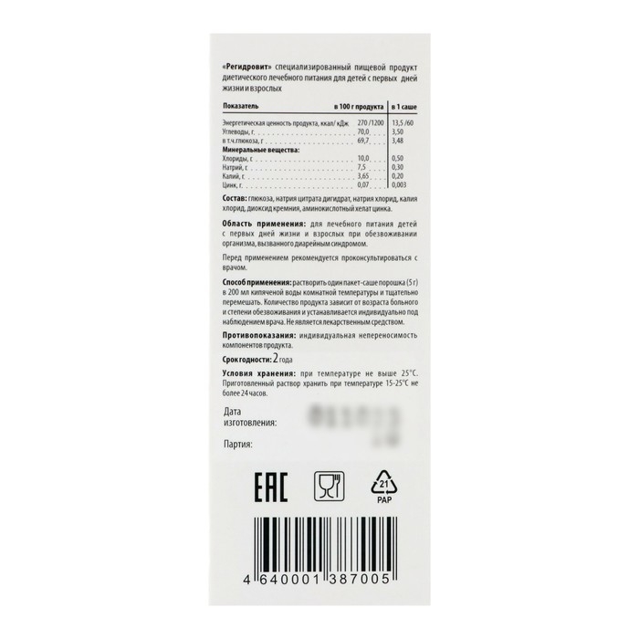 Для детей с первых дней жизни и взрослых при обезвоживании организма вызванного диарейным синдромом способствует восстановлению водно-солевого баланса в организме.