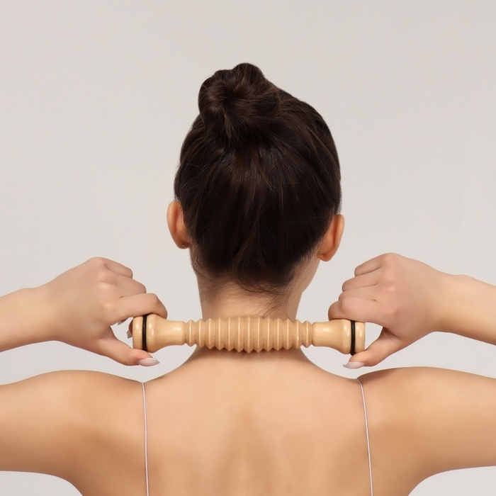 Массажёр «Скалка», универсальный, d 4 × 22 см, с резьбой, деревянный