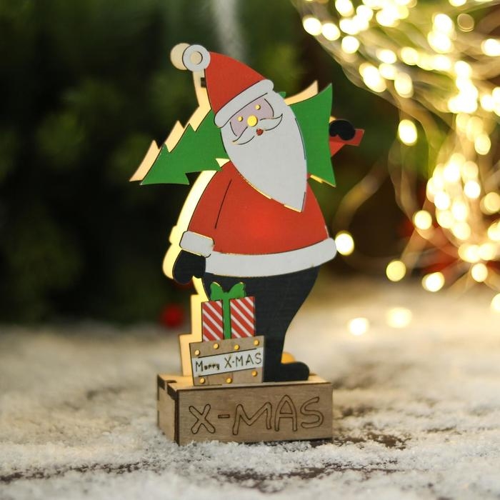 Фигурка новогодняя свет "Дед Мороз с ёлкой и подарками" 10х17 см