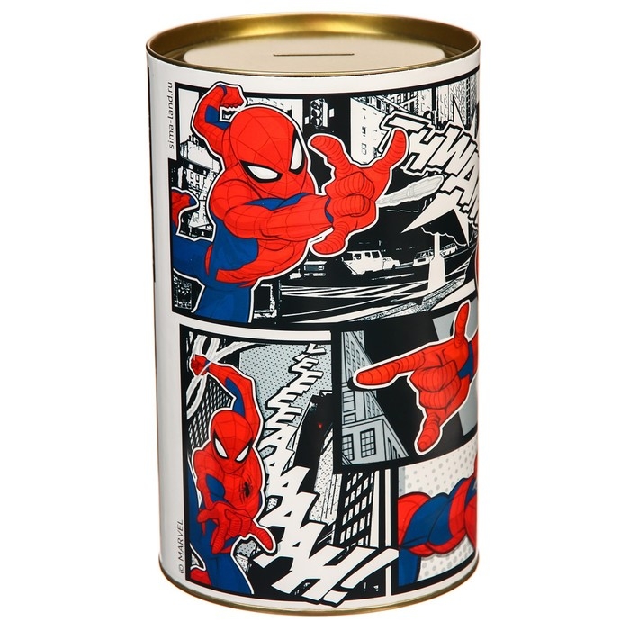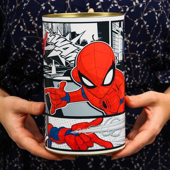 Копилка металлическая, 6,5 см х 6,5 см х 12 см, XXL "Супер герой", Человек-паук