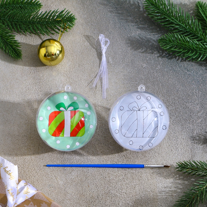 Ёлочное украшение под раскраску «Подарок» размер: 8 см; 2 шт., кисть
