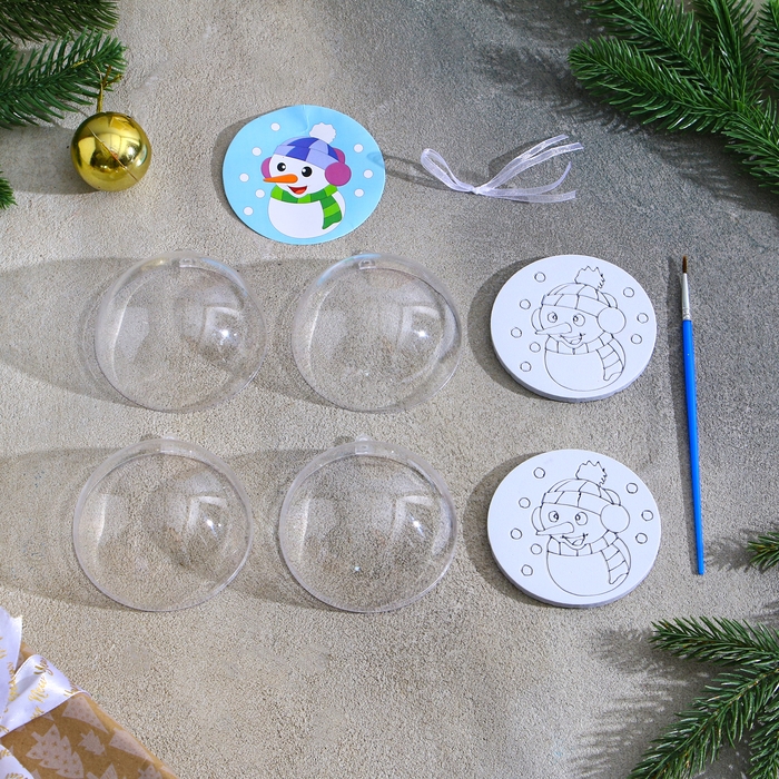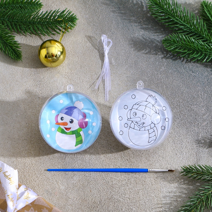Ёлочное украшение под раскраску «Снеговичок» размер: 8 см; 2 шт., кисть