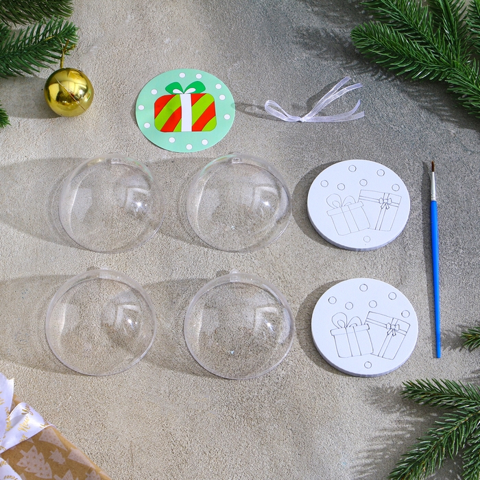 Ёлочное украшение под раскраску «Подарки» размер: 8 см; 2 шт., кисть