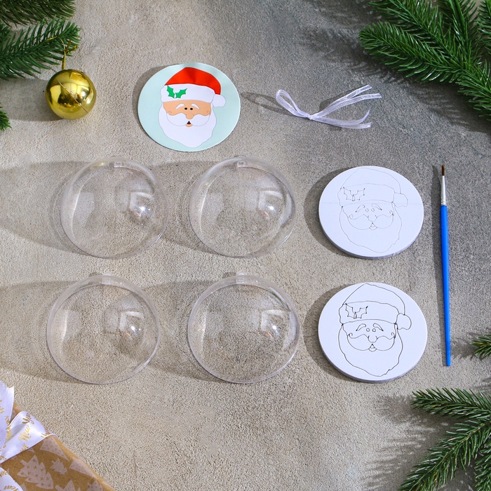 Ёлочное украшение под раскраску «Дед Мороз» размер: 8 см; 2 шт., кисть