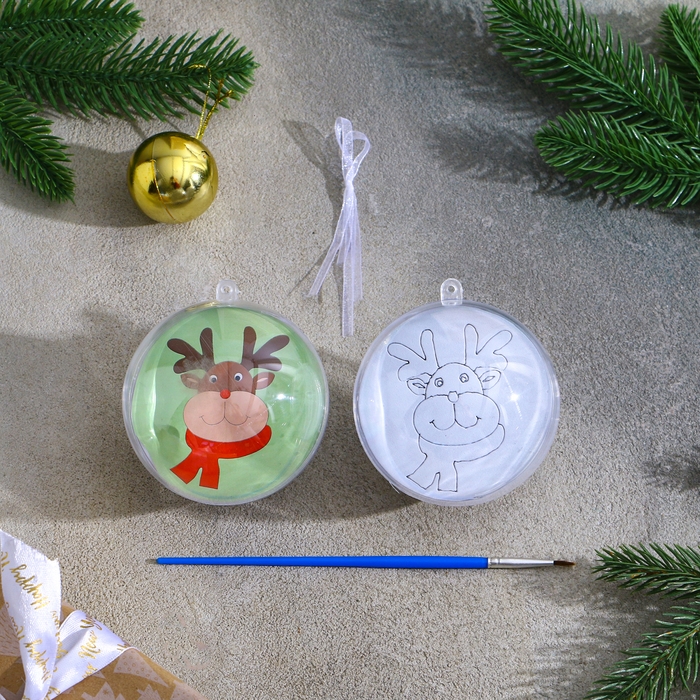 Ёлочное украшение под раскраску «Олень» размер: 8 см; 2 шт., кисть