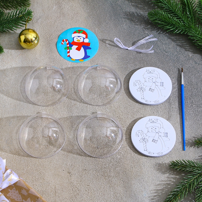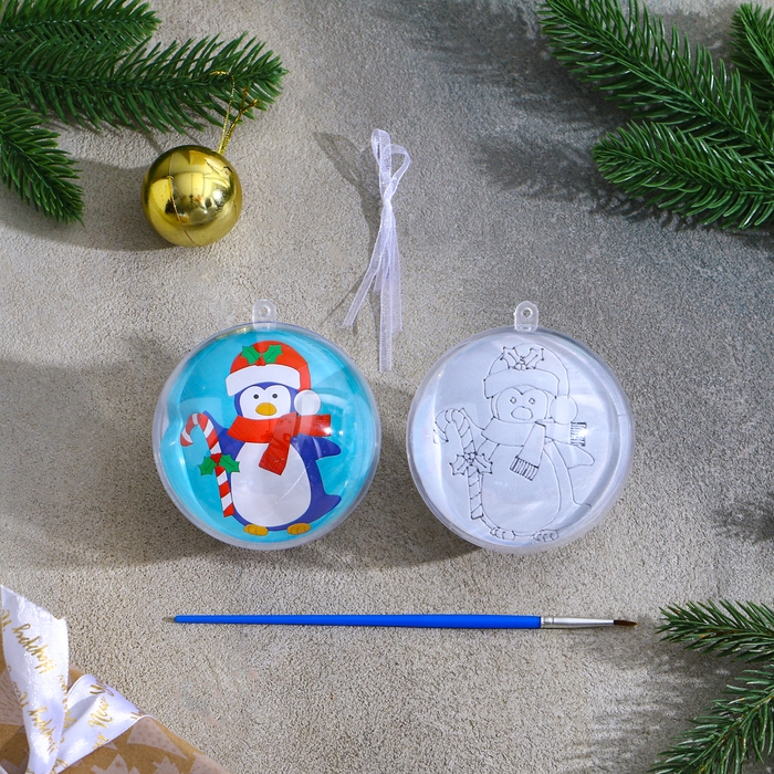 Ёлочное украшение под раскраску «Пингвин» размер: 8 см; 2 шт., кисть