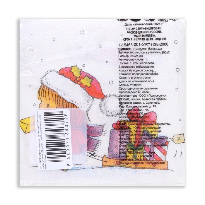 Новый год. Салфетки бумажные Гармония цвета «Новогодняя почта», 24х24 см, 100 листов