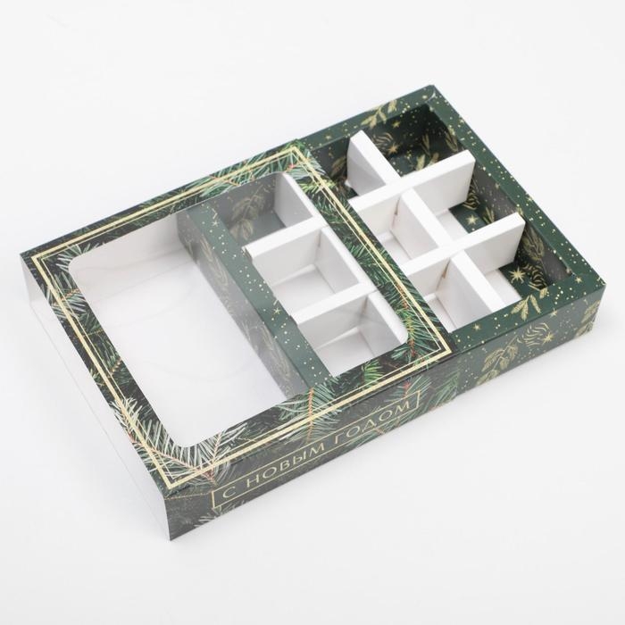 Коробка под 9 конфет с ячейками «Ёлочка» 14,5 х 14,5 х 3,5 см, Новый год