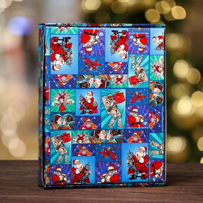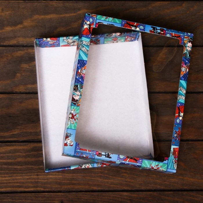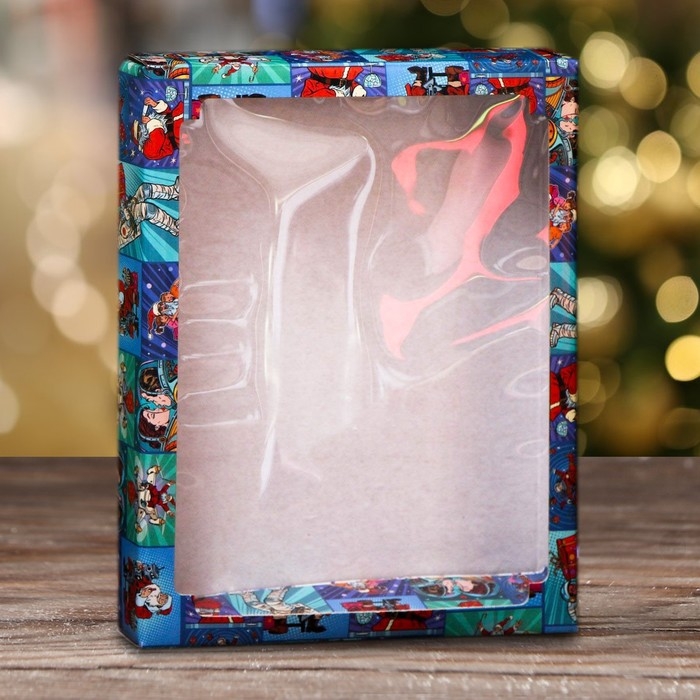 Новый год. Коробка сборная крышка-дно с окном, "Pop-art улётный новый год", 26 х 21 х 4 см.