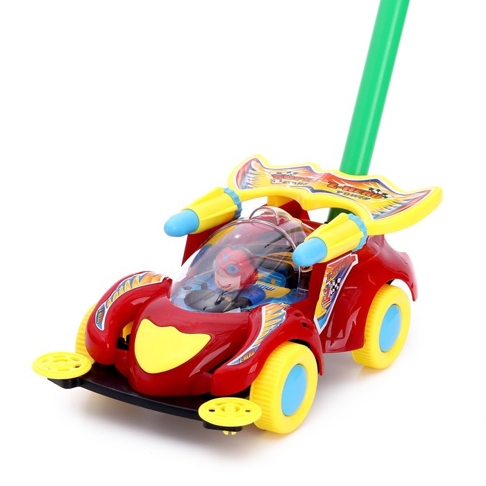 Каталка «Машинка гонка» на палочке, цвета МИКС