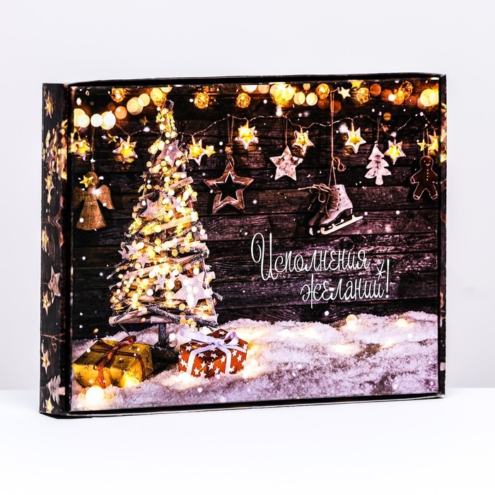 Новый год. Коробка сборная крышка-дно с окном, "Исполнения желаний", 26 х 21 х 4 см.