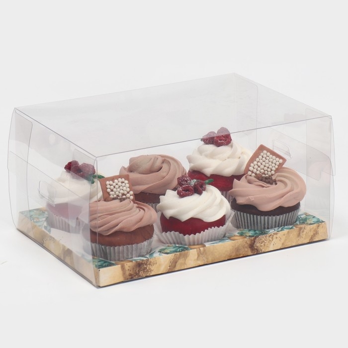 Коробка на 6 капкейков с окном, крафт, 25 х 17 х 10 см