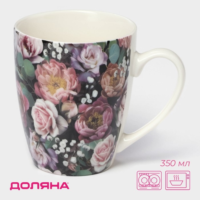 Кружка фарфоровая Доляна «Душистые розы», 350 мл