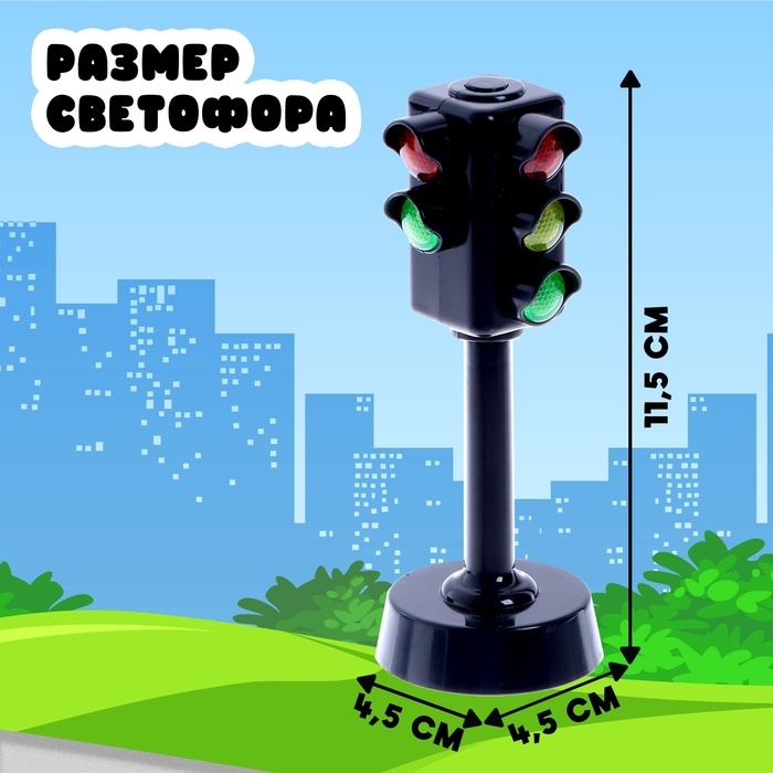 - Размер светофора: 4,5 × 4,5 × 11,5 см.