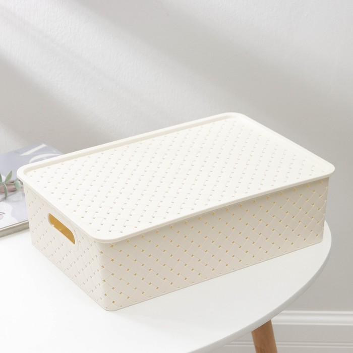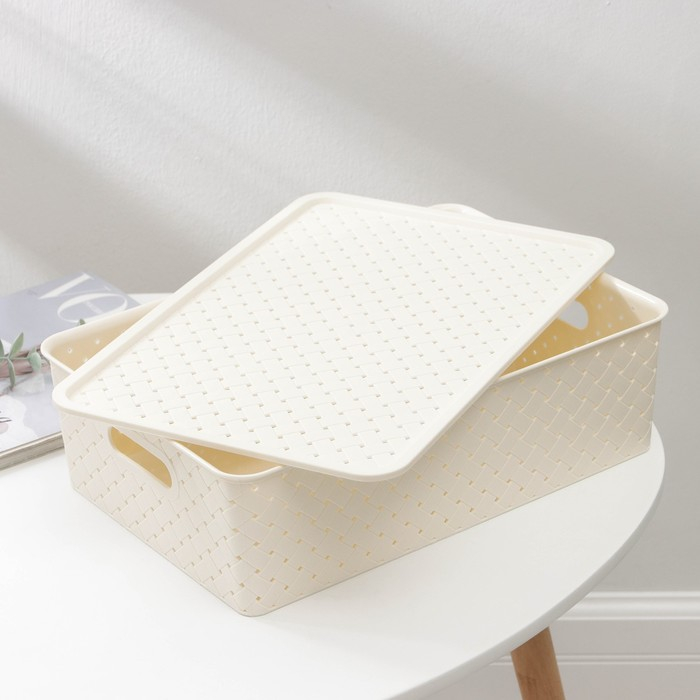 Корзина для хранения с крышкой «Береста», 7,5 л, 35×24,5×10,5 см, цвет слоновая кость