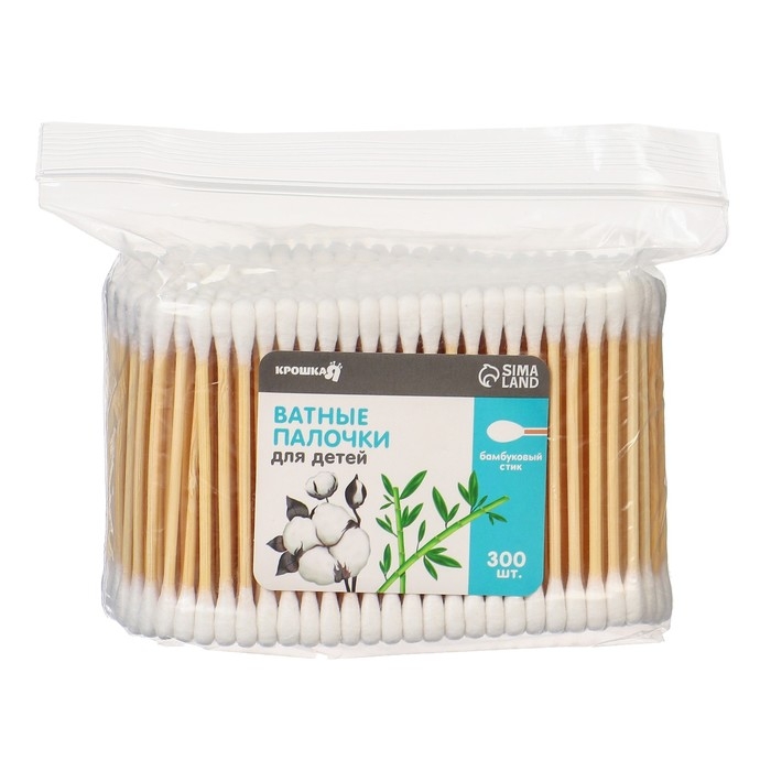 Ватные палочки для детей Крошка Я, коробка 200 шт., наконечник - классика, хлопок/бамбук