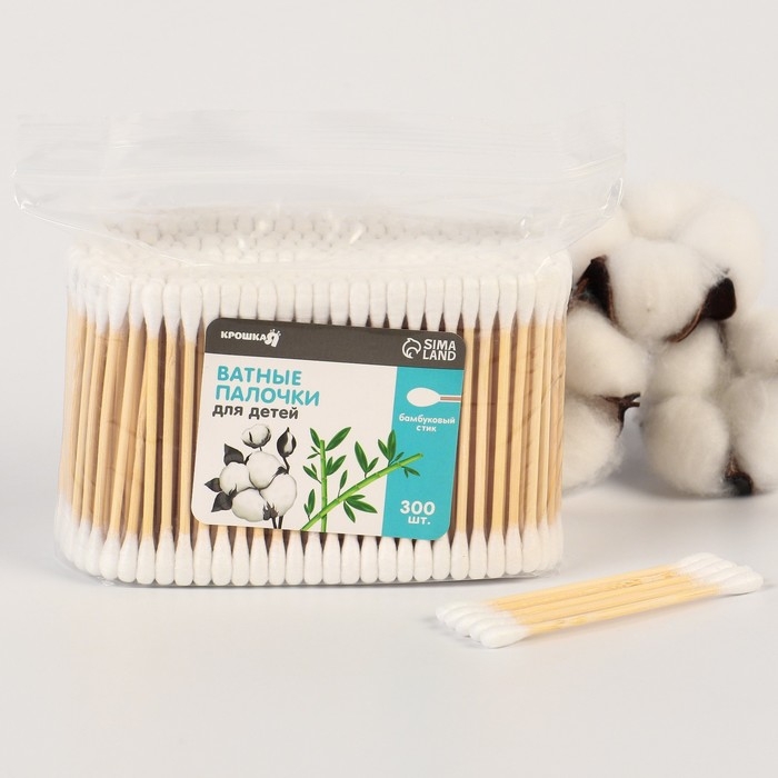 Ватные палочки. пакет 300 шт., наконечник - классика, хлопок/бамбук(стик)