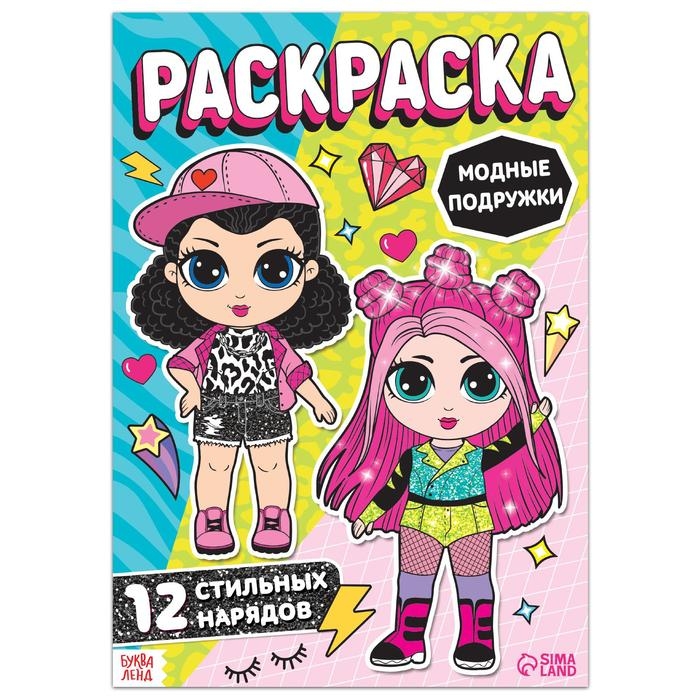 Раскраска для девочек «Модные подружки», 16 стр., формат А4