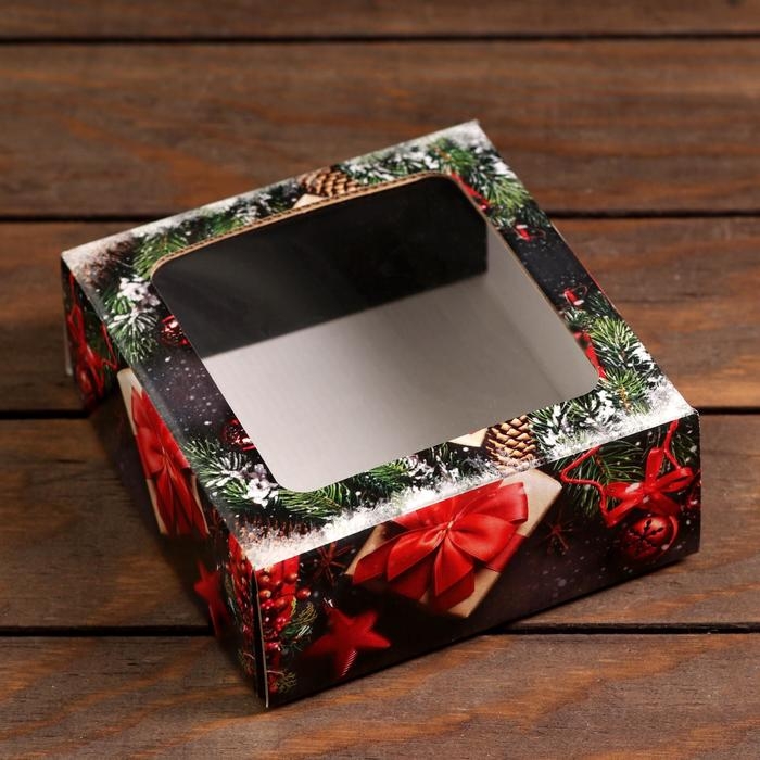 Новый год. Коробка подарочная, крышка-дно, "Волшебная ночь", 14,5 х 14,5 х 6 см.