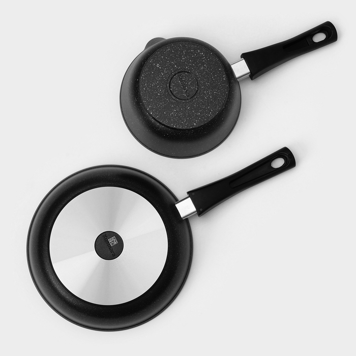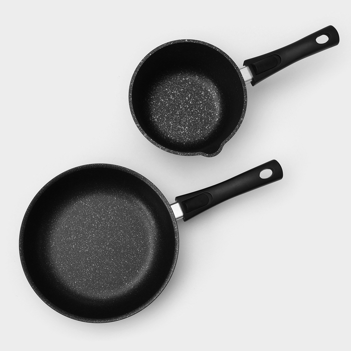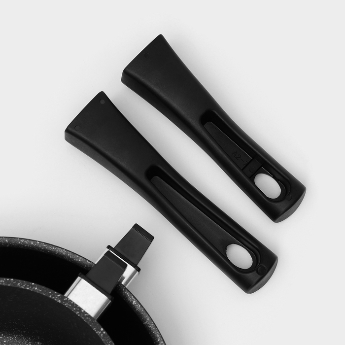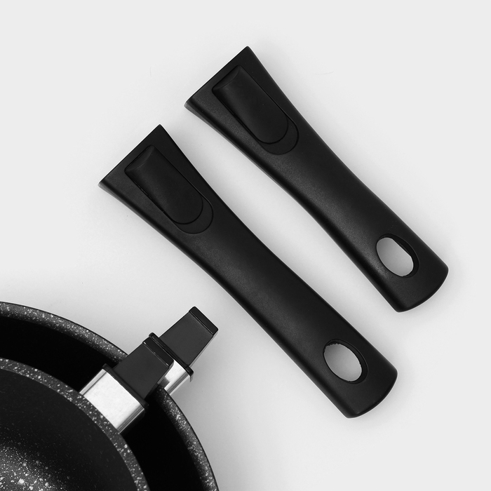 Набор кухонной посуды «Мраморная №3», 6 предметов, крышка, съёмная ручка, антипригарное покрытие, цвет тёмный мрамор
