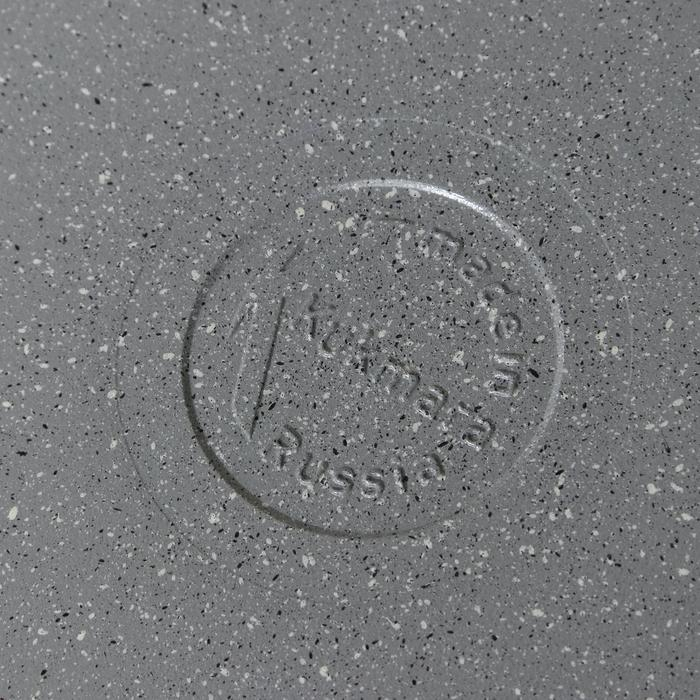 Посуда Kukmara «Мраморная» изготовлена из литого алюминия и покрыта инновационным антипригарным мраморным покрытием на водной основе, усиленным сверхтвёрдыми частицами минералов.