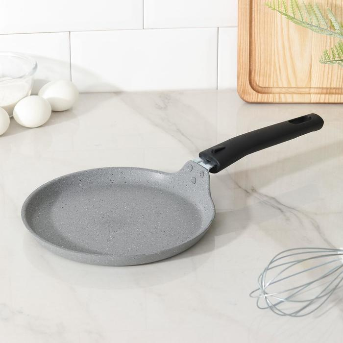 Сковорода блинная, d=20 см, пластиковая ручка, антипригарное покрытие, цвет светлый мрамор