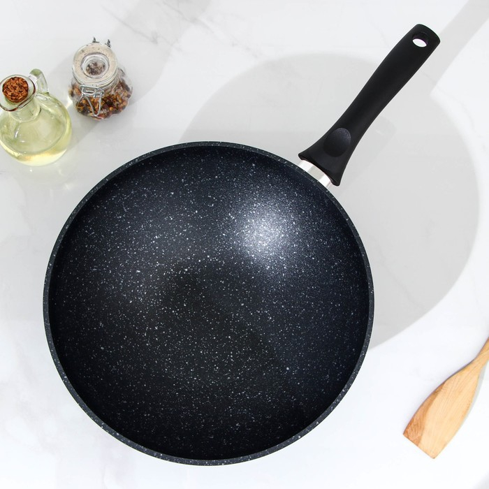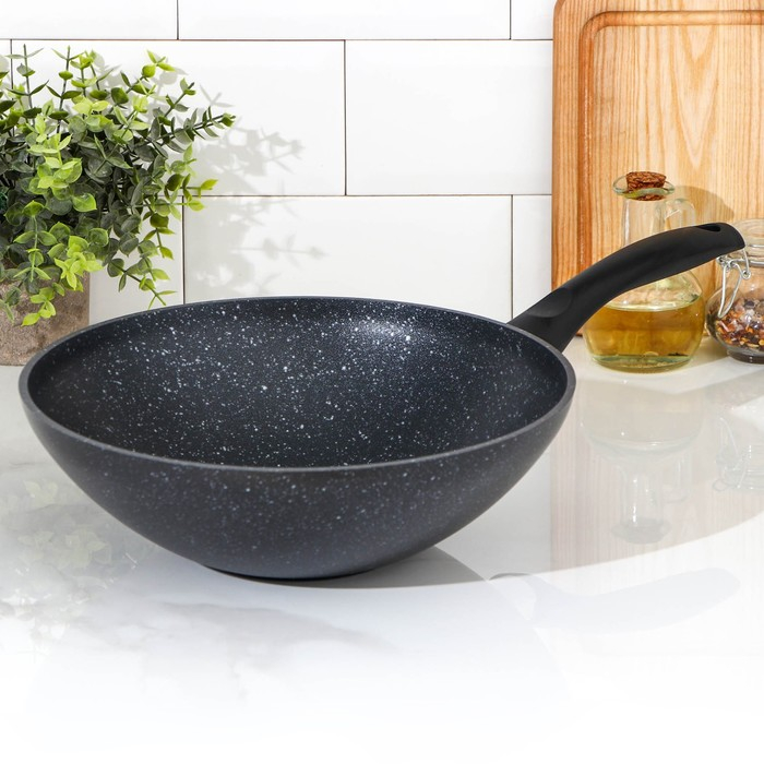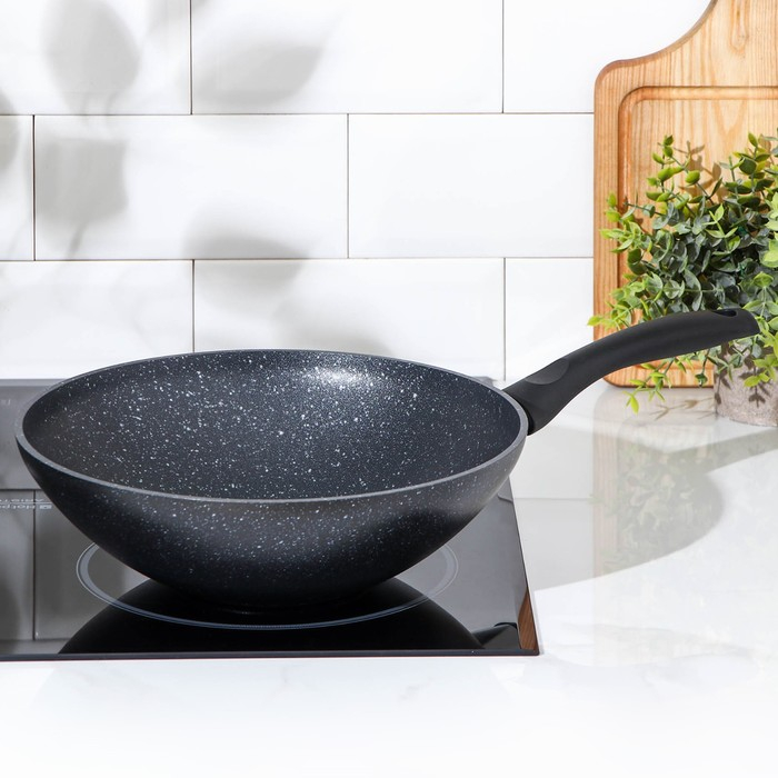 Сковорода-Wok, d=28, антипригарное покрытие, цвет тёмный мрамор