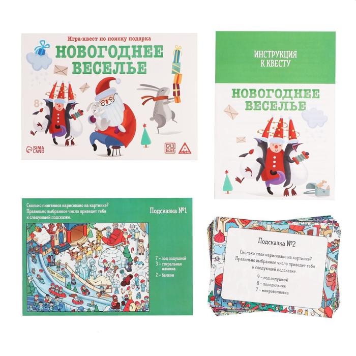 Новогодний квест по поиску подарка «Новый год: Веселье», 11 подсказок, письмо, 8+